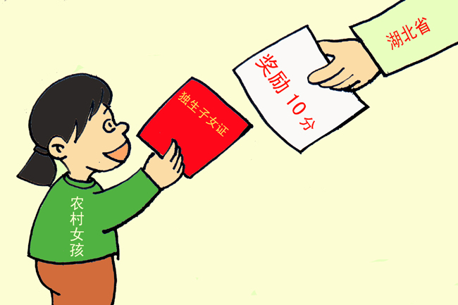 《人民日报》4月5日报道:从今年4月1日起,湖北省农村独生女高考将享受加10分的优惠政策。