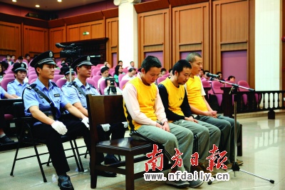 昨日上午,备受关注的广州“瘦肉精”案在白云区法院一审公开开庭审理(如图,通讯员供图)。据白云区检察院指控,邓云高、刘训尧、肖学庆3名被告人被控涉嫌销售有毒、有害食品罪。