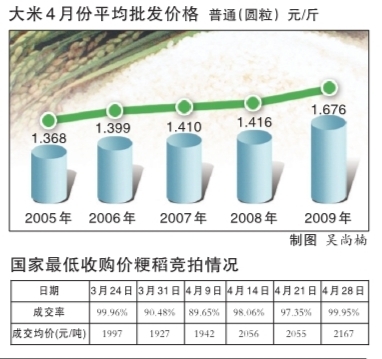 据了解,今年1月24日国家大幅提高稻谷最低收购价格标准,较去年每斤提高0.13元,提高幅度为16%左右。受此重大利好消息的刺激,2月份国内大米市场开始了真正意义上的价格上调。