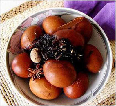 古人认为,鸡蛋圆圆溜溜,象征生活之圆满,立夏日吃鸡蛋能祈祷夏日之平安,经受“疰夏”的考验。立夏日一般在农历的四月,“四月鸡蛋贱如菜”,人们把鸡蛋放入吃剩的“七家茶”中煮烧就成了“茶叶蛋”。后来人们又改进煮烧方法,在“七家茶”中添入茴香、肉卤、桂皮、姜末,从此,茶叶蛋不再是立夏的节候食品,而成为我国传统小吃之一。