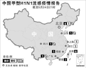 据新华社北京5月24日电(记者周婷玉)卫生部通报,5月24日卫生部接到浙江省卫生厅报告,温州市第二人民医院收治1例发热病例,根据临床表现、流行病学调查和实验室检验结果,初步诊断为甲型H1N1流感疑似病例。
