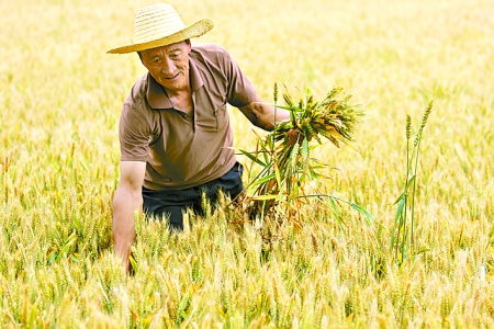 5月28日,新乡李庄农民娄全礼在自家的麦田里选小麦种子。近两天的一场雨催熟了黄河两岸的大部分小麦,“六一”后,这里将迎来“三夏”大忙季节。记者陈更生摄