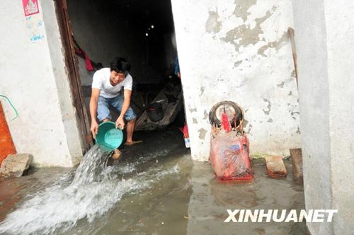 6月2日,南昌市何兴村一居民排家里的积水。新华社发