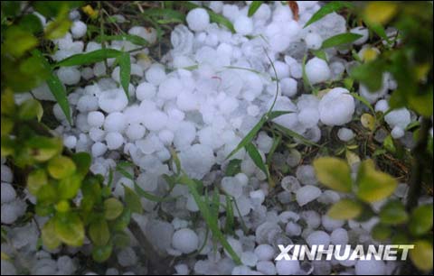 6月4日下午,冰雹袭击了安徽岳西8个乡镇。县政府所在地天堂镇的地面上瞬间铺满厚厚一层冰雹,最大的有鹌鹑蛋大小。据岳西县气象部门统计,降雹时间持续了34分钟,其中强降雹达20分钟,估计将对农作物造成较大损害,受冰雹影响最大的可能是刚栽下去不久的稻秧,部分尚未收割的小麦也将受到损失。