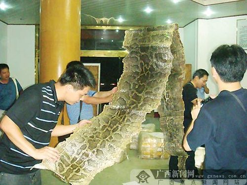据自治区公安厅禁毒总队负责人介绍,6月7日上午,他们接到举报,一辆从云南方向开过来的红色大货车形迹可疑。根据线索,禁毒总队布置警力,于当日下午在防城港市高速公路收费站,将嫌疑车辆拦截。车厢内的东西让人不禁大吃一惊:车上共有熊掌173只,蟒蛇皮4张(最长的长达5米),另还有一只穿山甲。