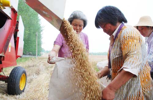 摘要:6月9日,农民将收获的小麦装袋。连日来,江苏省赣榆县抓住好天气,组织3000余台联合收割机为农民机械化抢收小麦,全县60万亩小麦将在6月15日前后全部抢收完毕。