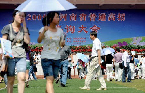 6月10日,2009年河南省普通高招咨询大会在郑州举行,400多所高校在咨询会上设立咨询台,为学生、家长解答有关招生的问题,以便学生选报高考志愿。