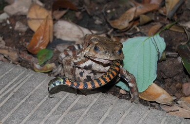 蛇本是蟾蜍、青蛙等动物的天敌,令人没有想到的是,蟾蜍竟然将蛇吞到了肚中,重庆游客在青城山旅游时,就偶然拍下了这罕见的画面。