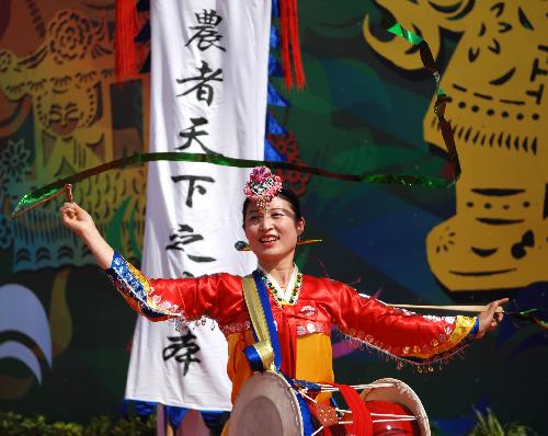 新华网辽宁频道6月23日消息 6月23日,农民演员在艺术节开幕式上表演。