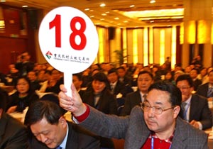 重庆农村土地交易所进行的首场土地交易会。 CFP 资料