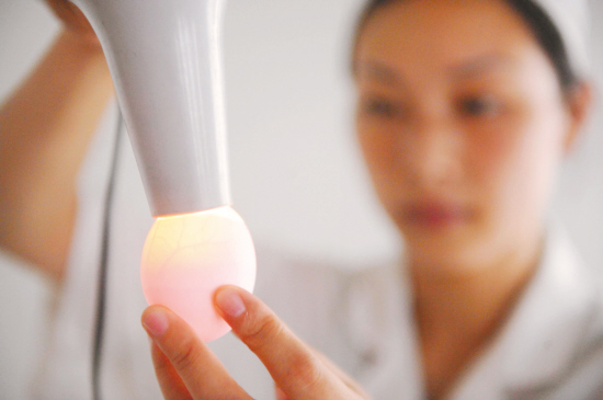 毒种是接种到鸡蛋上繁殖的,首先要选出健壮的鸡胚。灯光一照,甚至能看到蛋壳里的小鸡胚胎会动,用于疫苗生产的,实际上就是我们常说的“喜蛋”。