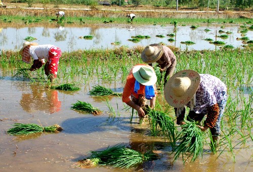 7月19日,在江西省乐平市后港镇梅花园村,“双抢钟点工”在水田里插秧苗。 眼下正值农忙“双抢”季节,江西乐平30万亩早稻收割田需要大量农村劳动力进行晒稻谷、拔秧、插秧苗等作业。当地农村留守妇女等人员紧抓这一契机,纷纷在家门口当起“双抢钟点工”,协助当地农户抢收抢种,成为田地里一道独特的风景线。7月19日,在江西省乐平市后港镇梅花园村,“双抢钟点工”在水田里插秧苗。 眼下正值农忙“双抢”季节,江西乐平30万亩早稻收割田需要大量农村劳动力进行晒稻谷、拔秧、插秧苗等作业。当地农村留守妇女等人员紧抓这一契机,纷纷在家门口当起“双抢钟点工”,协助当地农户抢收抢种,成为田地里一道独特的风景线。新华社发(朱定文 摄)
