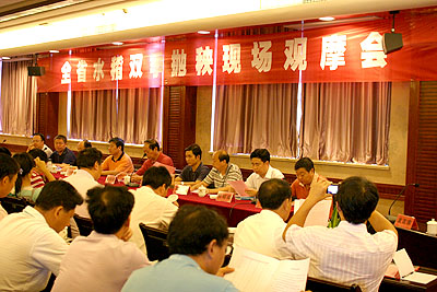 张忠平副厅长指出,要立足当前,继续加大技术推广力度,确保全年粮食生产目标的实现和今后粮食生产的可持续发展。今年我省早稻播种面积、单产、总产呈现“三增”的良好态势,实现连续6年增产已成定局。为确保实现全年粮食生产目标,还应继续做好以下几方面工作:一是要切实加强中晚稻田间管理。近期持续高温天气,旱情较重,对我省中晚稻产生较大影响,各地务必引起高度重视,各级部门要积极应对,加强田间管理和技术指导;二是扎实推进晚稻抛秧技术推广工作,双季抛秧技术推广工作的重点就在晚稻抛秧技术的推广;三是要加强技术宣传力度,要让农民搞得懂、学得会、做得到、积极采用。