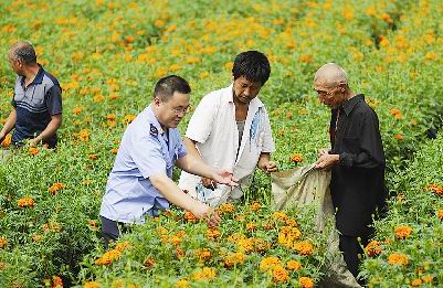 昨日上午,阳曲县工商局的工作人员和农民经纪人在凌井店乡帮助村民采摘万寿菊。阳曲县实施订单农业合作经营模式后,农业经济与生产规模得到快速增长,农民收入得到较大提高。