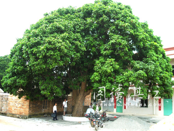 车行驶至村行政办公楼前停下来,刚下车便迎面走来两位年轻的村干部。在两层办公楼前,有一棵高大繁茂的龙眼树,树茎有三个成人携手围成一圈那么大,它的高度已超出两层楼顶好几米,估计绿荫覆盖面积不少于100平方米。“好大的一棵龙眼树,今天我真是大开眼界了!”我情不自禁地赞叹。余村长见我兴奋不已便说,村里还有几棵高大的龙眼树和参天的大榕树,村民们都很好地保护这些树,常年引来了成群的小鸟,生气勃勃,人鸟和谐。此刻我想,这是多么优美的生态环境啊!