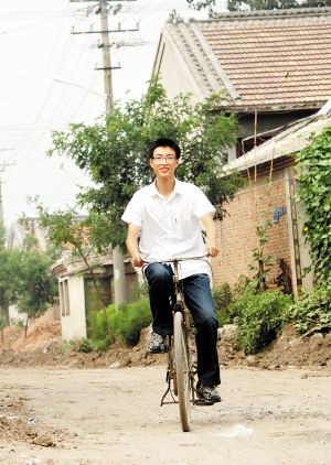骑着“28大铁驴”,戴着眼镜的王永升虽然被晒黑了不少,但还是不太像农民,不过,这并不会妨碍他成为农村人。