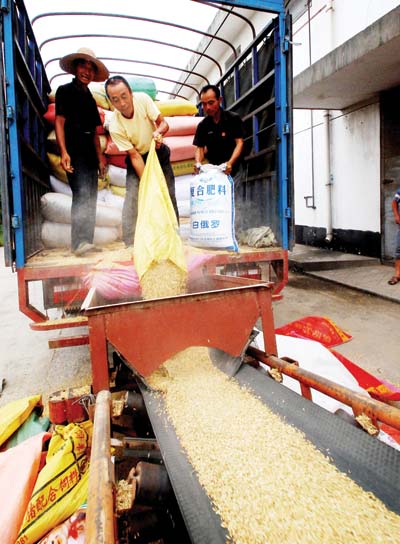 8月4日,江西九江市粮农在当地一个粮食储备库出售新粮。今年江西省早稻种植面积2235.4万亩,比去年增加33万亩,预计总产达82.7亿公斤,比去年增加2亿公斤以上,实现连续6年增产。