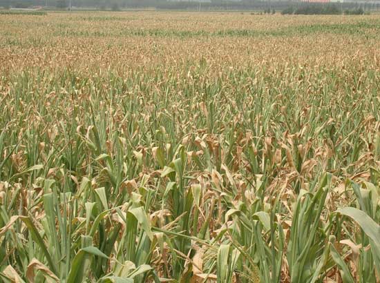 记者从辽宁省气象局获悉,受持续少雨影响,辽宁省朝阳县、建平县北部、北票市大部、义县大部、凌海市西北部地区发生50年来最严重伏旱,造成大田农作物大面积绝收。