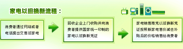 购买人首先要向家电回收企业交售旧家电,取得国家统一印制的家电以旧换新凭证,然后持回收凭证到家电销售企业购买新家电。家电销售企业代财政部门对购买人的回收凭证、相关证件进行审核。符合要求的,按照新家电销售价格减去补贴后的金额收取货款。同时,指导购买人填写《家电以旧换新(家电)补贴资金申报表》。(窦媛媛)