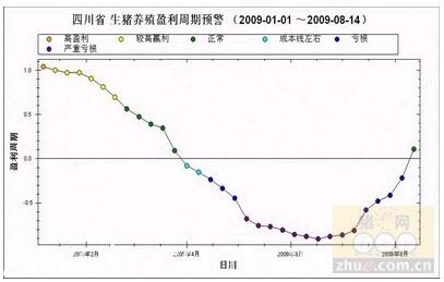 图1 2009年1月~8月第2周生猪盈利周期(猪料比)走势图