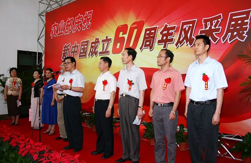 本网讯2009年8月20日,农业部干部职工庆祝新中国成立60周年风采展开幕式在全国农展馆举行,部党组成员、人事劳动司司长梁田庚出席并致辞,中央国家机关工委老龄办领导、有关部委离退休干部局负责同志应邀出席了开幕式。