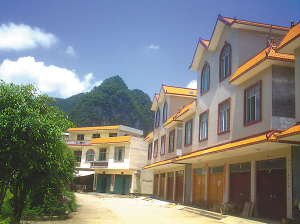 站在德保县都安乡窑庄文昌山上眺望,清澈明净的窑庄河静静地在村前流淌;一条宽阔笔直的德保至靖西二级公路穿屯而过;绿叶掩映中,整整齐齐地耸立着一栋栋两层小洋楼……这里就是全国民族小康示范村——窑庄。