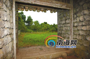 站在南引村村口,由火山石垒起的村道以及房屋地基依稀可见,古村道弯弯曲曲一直向村中延展,因多年无人行走,杂草丛生。定安县博物馆馆长苏逊指着一排排整齐的石头说,这就是古村落的地基,一直排列到村后。