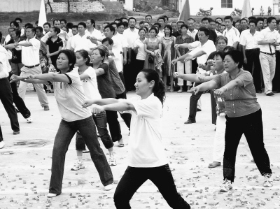 想做事又不知从何入手的大学生们有了用武之地。扬州大学2007级毕业生吴海霞说,通过和农民一起参加体育健身活动,提高了自己人际沟通、处理事务、组织协调的能力,彼此很快就熟悉了,可以叫得出村民们的名字,就是“村官”不在,村里人也会按时跟着广播里的音乐做操,连76岁的老大妈都来一起活动。其实,刚开始学操时手把手教还记不住,坚持做下去就熟了。吴海霞说的是淮安市体育局创编的农民健身操,记者在村民家中看到墙上贴着印发的动作分解挂图,内容涵盖了插秧、打农药等很多农活儿的基本动作,农民一看就眼熟,都说这操“容易上手”。