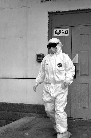 兰州医务人员身着防护服去接甲流感患者。 《西部商报》供片