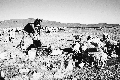 内蒙古镶黄旗新宝拉格镇查干德日苏嘎查牧民斯琴在饮羊。本报记者 贺 勇摄