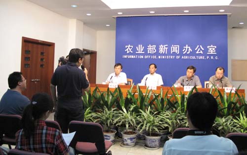 今年以来,党中央、国务院高度重视“三农”工作,坚持在应对金融危机中巩固和加强农业基础,继续巩固、完善和强化各项强农惠农政策。各级农业部门认真贯彻落实党的十七届三中全会和今年中央1号文件精神,坚定农业稳定发展、农民持续增收目标不动摇,积极应对国际金融危机和去冬今春历史罕见的特大旱情等不利影响,农业农村经济总体保持良好发展势头。8月31日,农业部召开新闻发布会,农业部新闻发言人陈萌山就当前农业生产形势、抗旱和秋粮生产、农产品价格以及确保农产品供给等老百姓关注的几个问题接受了记者的集体采访。