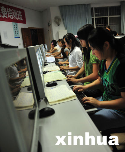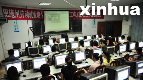 9月2日,农民工在学习电脑知识。日前,湖北省州劳动就业培训中心开展免费培训返乡农民工活动,首批100名返乡农民工开始接受为期3个月的免费电脑培训。培训由专业劳动技能学校教师授课,学费、材料费由政府承担,培训结束后免费为农民工学员推荐工作。杨顺丕 摄