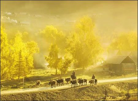初秋美景藏在乡村里。在喀纳斯湖旁的白哈巴村、禾木乡村,散落着村民们居住的小木屋,马儿们如星星般散落四周,整个村庄展现出一幅融合了哈萨克、维吾尔、蒙古族特色的民族风情。