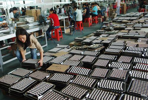 在庐江县万山镇农民工创业园,工人在一家电子企业工作(9月10日摄)。2008年以来,安徽省各地抓住农民工陆续返乡的时机,启动农民工创业园建设,实行房租水电减免、税费减免、提供创业资金支持等优惠政策,为返乡农民工创业、就业搭建平台。截至2009年5月底,安徽省第一批103个创业园中,已有66个建成并投入使用,吸纳229个项目或企业入园,带动农民工园内就业1.7万人。其中,庐江县农民工创业园项目自2008年6月启动以来,已建成三个农民工创业园,入驻企业12家,吸纳就业人员1000多人,受到返乡农民工的欢迎,成为当地劳动力转移的重要渠道。