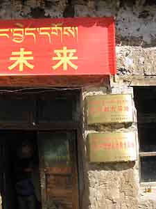 我们首先走进了一座装饰一新,鲜花盛开的藏式小院。院门口的旗杆上,五星红旗迎风飘扬。一块商务部“万村千乡市场工程”百姓之家的招牌分外醒目。这里就是格桑次仁的家。