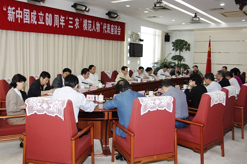 9月21日,农业部在北京召开 “新中国成立60周年‘三农’模范人物”代表座谈会。会上,宣读了《农业部关于授予丁颖等100名“新中国成立60周年‘三农’模范人物”荣誉称号的决定》,“三农”模范人物获奖代表——农业部小麦专家指导组组长、中国工程院院士于振文,江苏省盐城市射阳县农技推广中心副主任、高级农艺师姜德明介绍了他们的先进事迹,模范人物推荐单位代表和部系统干部职工代表热烈发言。农业部副部长危朝安向当选的“三农”模范人物表示热烈祝贺,对他们为“三农”事业做出的突出贡献致以崇高敬意。危朝安说,农业部在全国农业系统组织开展“新中国成立60周年‘三农’模范人物”评选活动,既是贯彻落实中央加强爱国主义教育精神的具体体现,也是激励农业系统广大干部职工和农民群众继续解放思想、坚持改革创新,促进农业农村经济持续健康发展的重要途径。通过表彰宣传“三农”模范人物,热情讴歌先进典型,既高扬了爱国主义的伟大旗帜,丰富了爱国主义的深刻内涵,也加深了农业系统广大干部群众对爱国主义的理解,增强了建设伟大祖国的责任感和使命感。