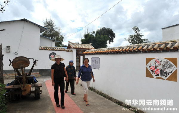 几位村民行走在新修的村中小道上 位于云岭高原深处的云南省保山市昌宁县田园镇三甲村,是一个典型的山区贫困村。2008年,该村开始启动一系列攻坚脱贫项目,采取农户自筹、政府投入、社会捐资、整合扶贫资金等方式,投入1200多万元,改造村容村貌,兴修水利、改善交通、打造桑田并兴建文化教育设施。目前,已经完成灌溉、道路、灯光、饮水、桑田、蚕房、文化设施和庭院建设等工程项目,村容村貌大幅改观,农民生活环境及生活质量明显提高。