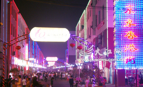 9日,记者在南昌市新竣工的京东香港街上看到,夜幕降临时,400米长街灯火辉煌、人山人海。店家们忙得不亦乐乎。据了解,该街作为江西农村的特色商业街,竣工以来吸引了大批商家和消费者的光顾,被人们亲切地称为“江西农村第一街”。(记者王祺)