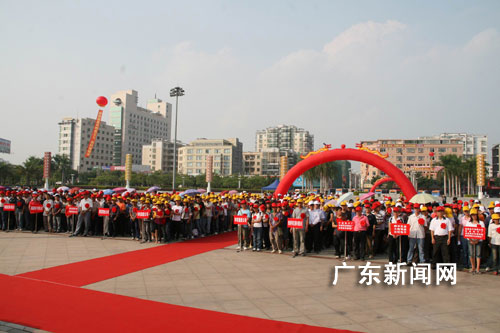 中新广东网11月11日电 (赖晓晓 李晓敏) 记者今天从广东惠州市博罗县委办获悉,十一月十日,博罗县举行了大型农村劳动力转移就业欢送仪式,欢送来自全县十七个镇(办事处)近三千名农民工,到华阳集团等五十多个企业就业。