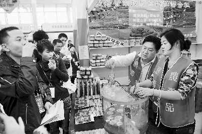 图为台湾茶商在博览会上推介台湾茶品。