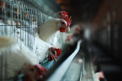这是黄沙蛋鸡场内的情景(11月23日摄)。 江西瑞金市叶坪乡37位在外打工的农民工去年由于经济危机返回家乡,在党委、政府的支持下,成立合作社,采取资金入股、土地入股和技术入股的方式吸纳返乡农民工共同创业。如今,他们成立了江西省规模最大的蛋鸡场——黄沙蛋鸡场,每年产鲜蛋3600余吨,加工肉鸡20万只,年产优质有机肥3000余吨,可实现年创综合产值3060万元,创利400余万元。 新华社发(周密 摄)