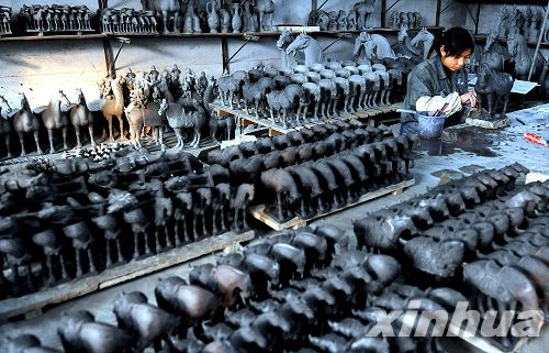 新华网河南频道12月25日电 位于河南省孟津县黄河南岸的南石山村,有多年修复、生产唐三彩的历史。近年来,在政府的扶持下,南石山村仿古工艺品生产迅速发展起来,产品包括唐三彩、兵马俑等仿古工艺品,达1500多个品种,在国内外市场上深受欢迎。如今,村里的仿古工艺生产企业达72家,年产值7500多万元,被誉为国内的“仿古工艺品第一村”。