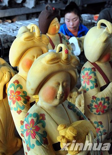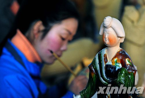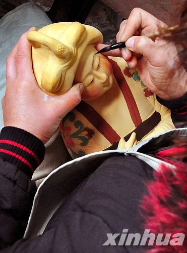 12月24日,一位工人在给仿古工艺品的半成品作彩绘。