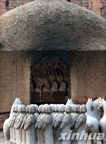 12月24日,一批仿古工艺品的原胚摆放在传统土窑前,等待烧制。