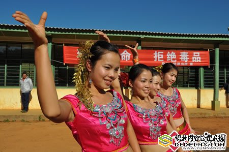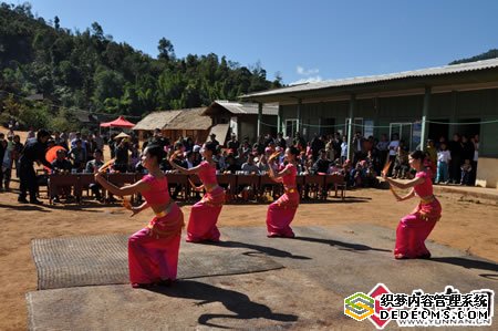 新年的第一天,勐龙边防派出所将曼飞龙的村民请到了班南坎村,让他们感受外面的世界。这场联欢会在露天下进行,舞台由四张草席铺在地上,一阵狂风过后,舞台上黄土飞扬。虽然这里演出最简陋,但这里的群众却是最忠实的观众,他们顶着烈日、坐在黄土上看表演。