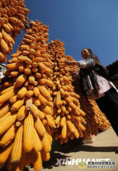 这是一名小箐村的彝族妇女在自家小院内整理玉米棒子(摄于1月5日)。