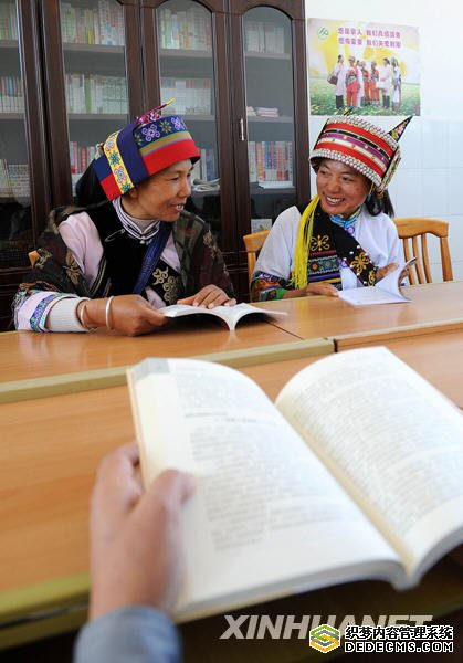 几名小箐村的彝族群众在村里的农家书屋看书、学习(摄于1月5日)。