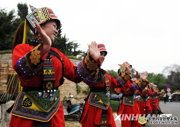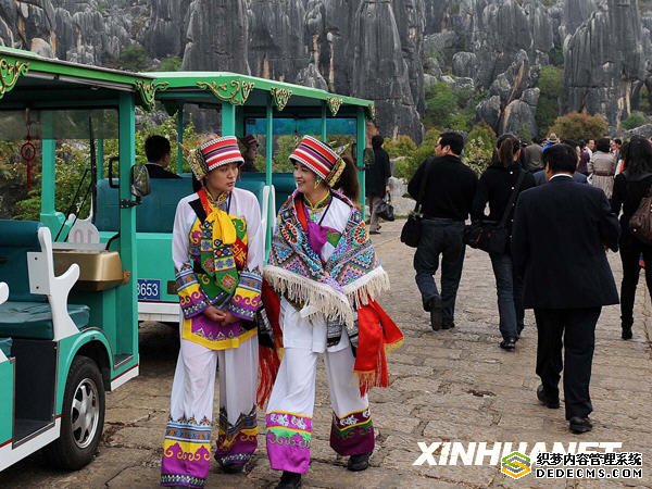 小箐村的一些彝族姑娘在石林景区内表演(摄于2009年3月31日)。
