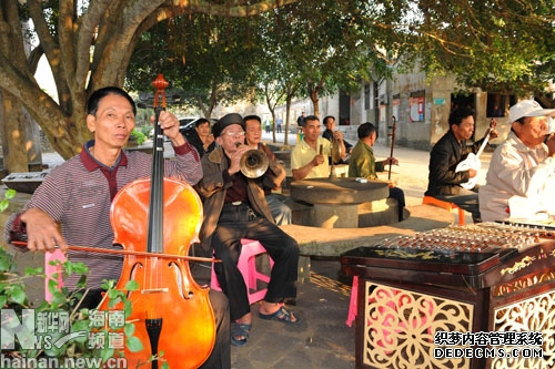 1月16日,美社村的八音乐队为游客展示自编自演的节目。
