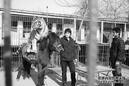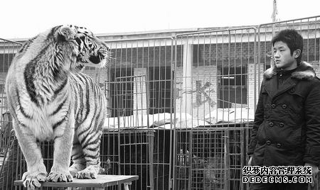 在胡敬才临时搭建的驯虎场上,七八岁大的东北虎“罗喜”和三四岁的“帕特”均处于“少女时代”,从未生育。“罗喜已到了生育年龄,但因工作需要,一直未找如意郎君。”胡卫平笑着说。